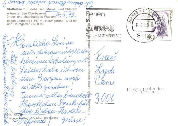 73010377 alte Postkarte Murnau Staffelsee Fliegeraufnahme mit Ohlstadt Jochberg Herzogstand und Heimgarten postalisch gelaufen Erhaltung siehe scans [WerneD78] KatCode: 11110009180124