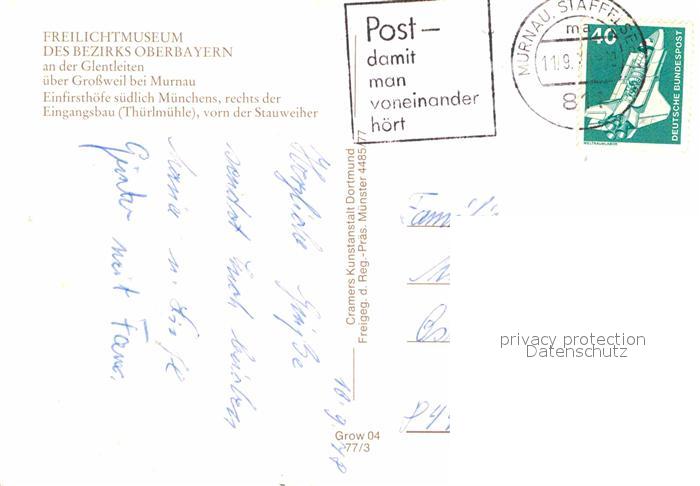 72667709 alte Postkarte Murnau Staffelsee Freilichtmuseum postalisch gelaufen Erhaltung siehe scans [AndreD76] KatCode: 11110009180124