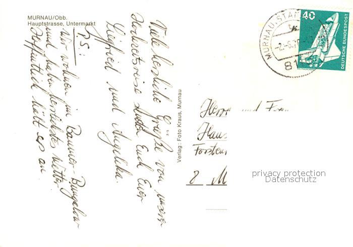73574827 alte Postkarte Murnau Staffelsee Hauptstrasse Untermarkt postalisch gelaufen Erhaltung siehe scans [FriedD77] KatCode: 11110009180124
