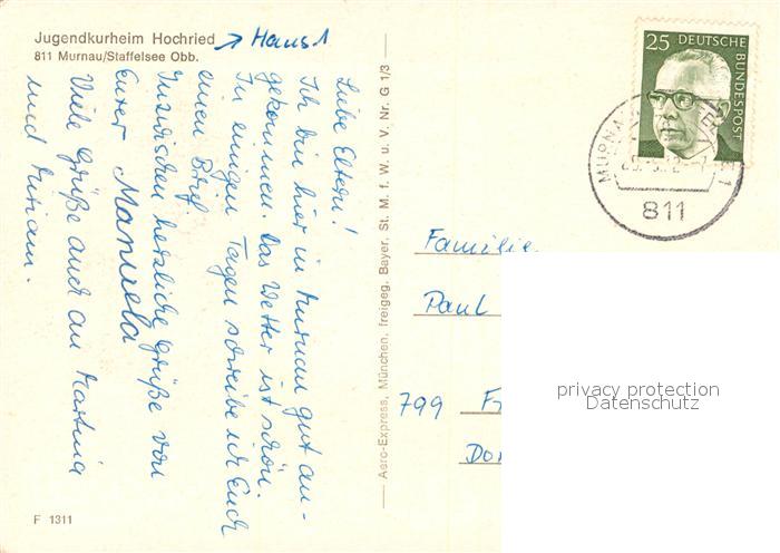 73124610 alte Postkarte Murnau Staffelsee Jugendkurheim Hochried postalisch gelaufen Erhaltung siehe scans [NatalD47] KatCode: 11110009180124
