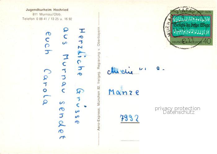 73835700 alte Postkarte Murnau Staffelsee Jugendkurheim Hochried Details postalisch gelaufen Erhaltung siehe scans [WerneD78] KatCode: 11110009180124