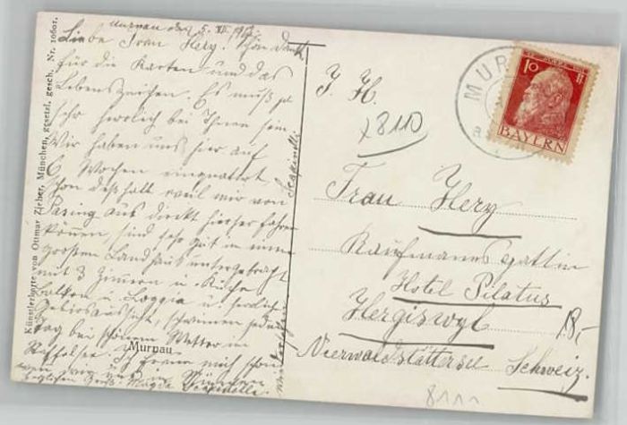Murnau Staffelsee Künstlekarte rF. Bernhard x 1912