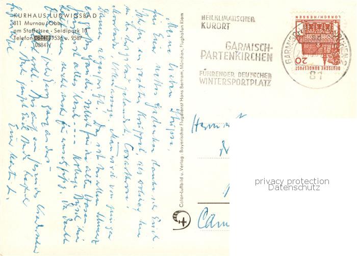 73761922 alte Postkarte Murnau Staffelsee Kurhaus Ludwigsbad Fliegeraufnahme postalisch gelaufen Erhaltung siehe scans [FriedD77] KatCode: 11110009180124