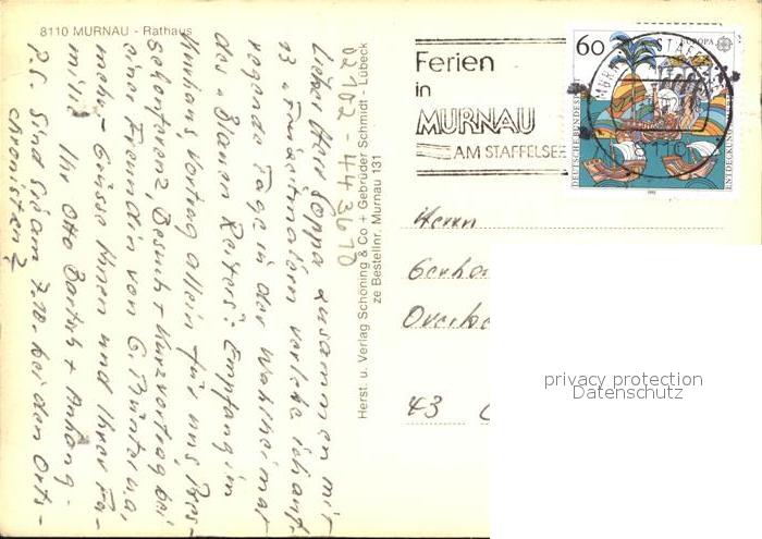72409066 alte Postkarte Murnau Staffelsee Rathaus postalisch gelaufen Erhaltung siehe scans KatCode: 11110009180124