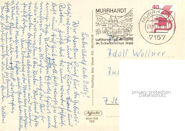 73617794 alte Postkarte Murrhardt Brunnen Rathaus Park Details postalisch gelaufen Erhaltung siehe scans [WerneD78] KatCode: 11110008119044