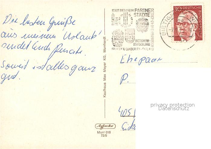 73267612 alte Postkarte Murrhardt Brunnen Schloss Marktplatz Teilansichten postalisch gelaufen Erhaltung siehe scans [WerneD78] KatCode: 11110008119044