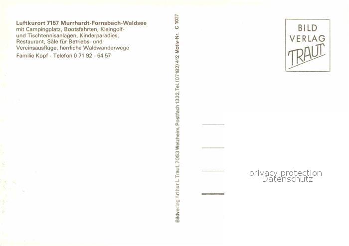 72842699 Murrhardt Campingplatz Bootsfahrten Kleingolf Mini Eisenbahn postalisch nicht gelaufen Erhaltung siehe scans [AndreD76] KatCode: 11110008119044