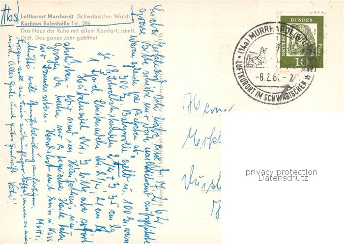 73018886 alte Postkarte Murrhardt Kurhaus Eulenhoefle postalisch gelaufen Erhaltung siehe scans [NatalD47] KatCode: 11110008119044