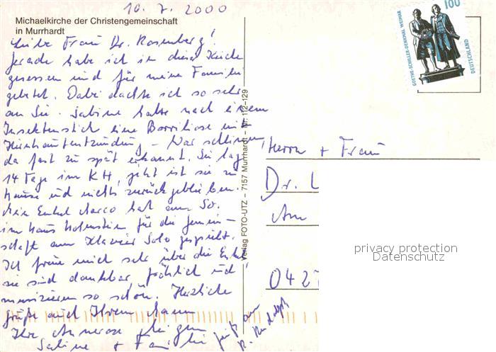 72802733 alte Postkarte Murrhardt Michaelkirche der Christengemeinschaft postalisch gelaufen Erhaltung siehe scans [FriedD77] KatCode: 11110008119044