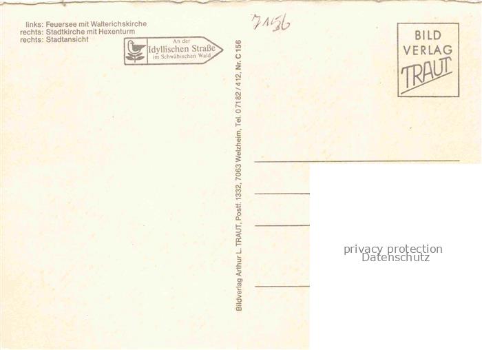74053227 Murrhardt Rems-Murr-Kreis BW Feuersee mit Walterichskirche Stadtkirche mit Hexenturm Stadtansicht postalisch nicht gelaufen Erhaltung siehe scans [WerneD78] Wern Katcode 11110008119044