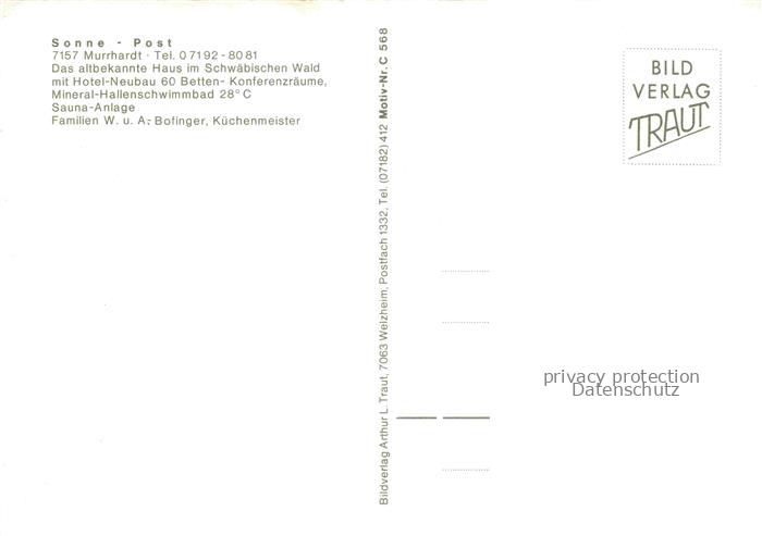 74010330 Murrhardt Rems-Murr-Kreis BW Hotel Sonne Post postalisch nicht gelaufen Erhaltung siehe scans [WerneD78] Wern Katcode 11110008119044