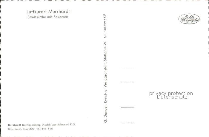72063073 Murrhardt Rems-Murr-Kreis BW Stadtkirche mit Feuersee postalisch nicht gelaufen Erhaltung siehe scans KatCode: 11110008119044