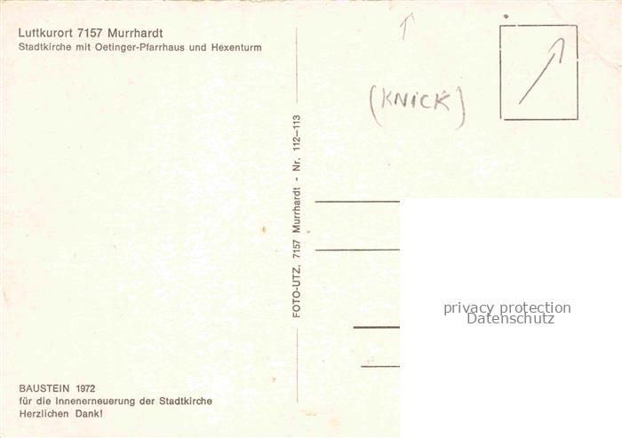 74052697 Murrhardt Rems-Murr-Kreis BW Stadtkirche mit Oetinger Pfarrhaus und Hexenturm postalisch nicht gelaufen Erhaltung siehe scans [WerneD78] Wern Katcode 11110008119044