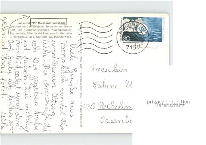 72184998 alte Postkarte Murrhardt Rems-Murr-Kreis BW Waldsee Campingplatz postalisch gelaufen Erhaltung siehe scans KatCode: 11110008119044