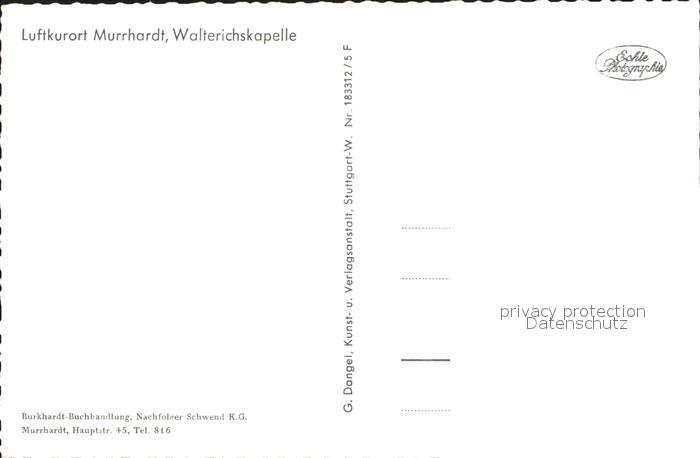 72062021 Murrhardt Rems-Murr-Kreis BW Walterichskapelle postalisch nicht gelaufen Erhaltung siehe scans KatCode: 11110008119044