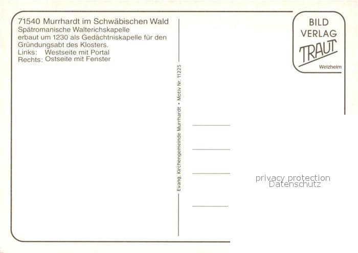 73267604 Murrhardt Spaetrom Walterichskapelle Westseite mit Portal Ostseite mit Fenster postalisch nicht gelaufen Erhaltung siehe scans [WerneD78] KatCode: 11110008119044