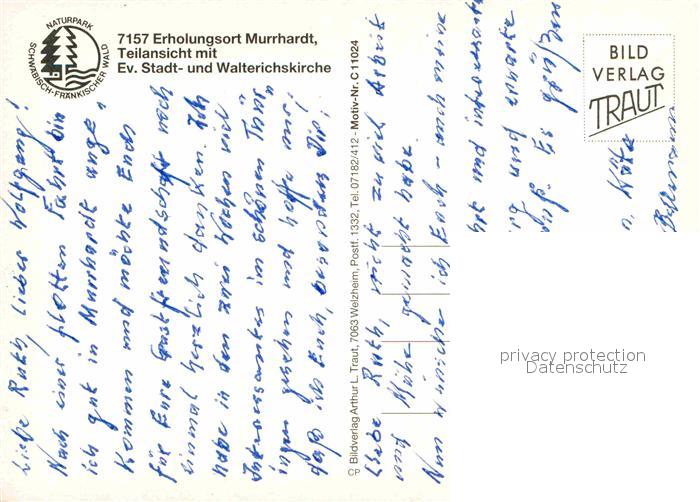 72754020 Murrhardt Teilansicht mit ev. Stadt und Walterichskirche Fliegeraufnahme postalisch nicht gelaufen Erhaltung siehe scans [FriedD77] KatCode: 11110008119044