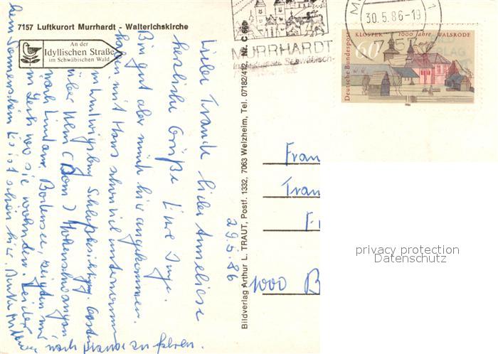 73132220 alte Postkarte Murrhardt Walterichskirche postalisch gelaufen Erhaltung siehe scans [KathaD81] KatCode: 11110008119044