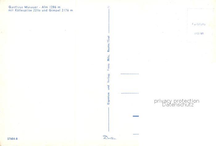 73169797 Musau Tirol Gasthaus Musauer Alm Koellespitze Gimpel postalisch nicht gelaufen Erhaltung siehe scans [KathaD81] KatCode: 11390331070822