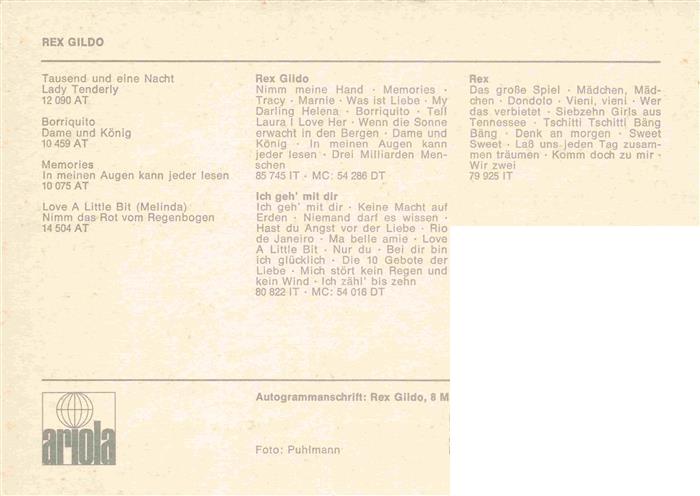 74035680 Musik Rex Gildo ariola postalisch nicht gelaufen Erhaltung siehe scans [IrynaD87] KatCode: 22560000003000
