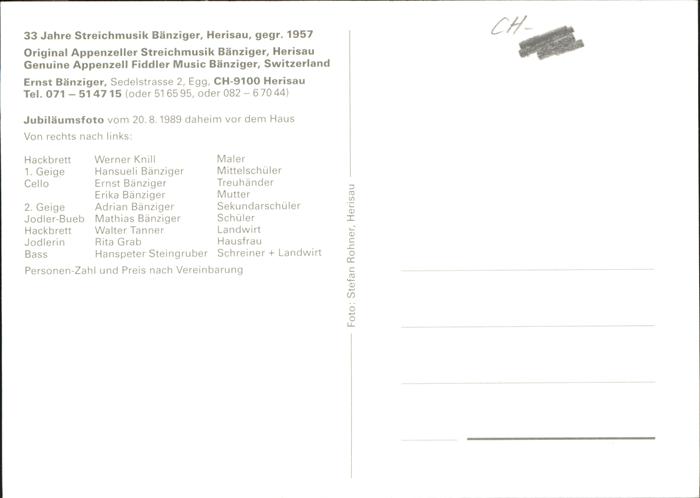 71373792 Musikanten Bänziger Appenzell Herisau Alphorn Cello KatCode 22560000003000