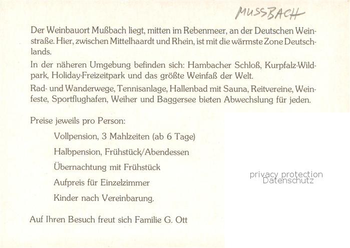 73762175 Mussbach Gaststaette Zum Hirsch Restaurant Fremdenzimmer Freibad postalisch nicht gelaufen Werbekarte (keine Postkarte) Erhaltung siehe scans [FriedD77] KatCode: 11110007316000