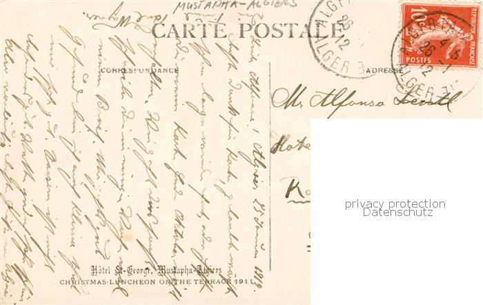 73821643 Mustapha-Algiers Algerie Freiterrasse postalisch gelaufen Erhaltung siehe scans [WerneD78] old postcard Wern Katcode 18030