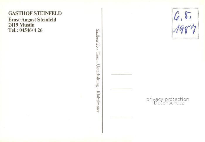 73197182 Mustin Ratzeburg Gasthof Steinfeld postalisch nicht gelaufen Erhaltung siehe scans [FriedD77] KatCode: 11110001053093