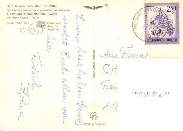 73090966 alte Postkarte Muthmannsdorf Winzendorf Fliegeraufnahme Herz Kreislaufheilstaette Felbring postalisch gelaufen Erhaltung siehe scans [KathaD81] KatCode: 11390