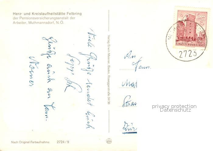 73235413 alte Postkarte Muthmannsdorf Winzendorf Herz- und Kreislaufheilstaette Felbring postalisch gelaufen Erhaltung siehe scans [LiesaD40] KatCode: 11390