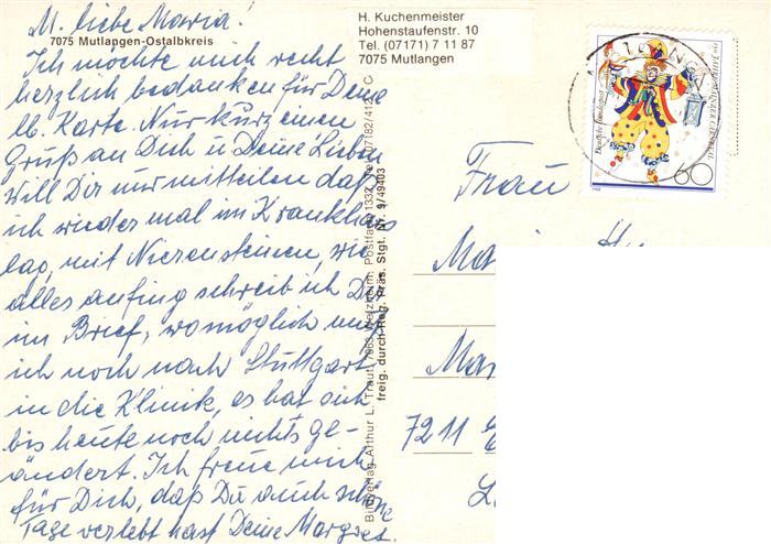 73910901 alte Postkarte Mutlangen Fliegeraufnahme postalisch gelaufen Erhaltung siehe scans [FriedD77] KatCode: 11110008136044