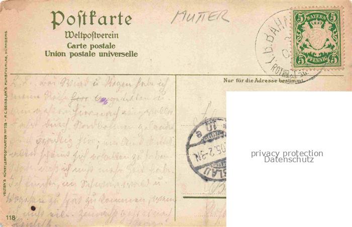 74033398 alte Postkarte Mutter Karl Kuenstlerlitho Rothenburg Klingenthor postalisch gelaufen Erhaltung siehe scans [SanaeD93] KatCode: 22240000000900