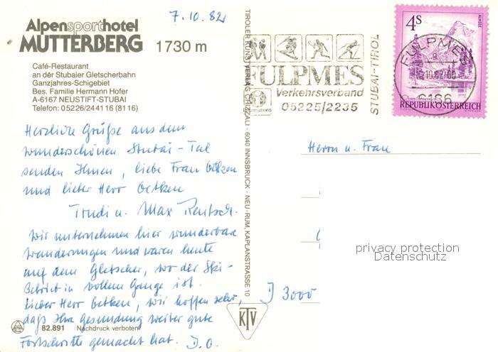 73161904 alte Postkarte Mutterberg Alpensporthotel Winterpanorama Bergbahn postalisch gelaufen Erhaltung siehe scans [KathaD81] KatCode: 11390332070334