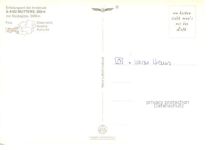 73244797 Mutters Tirol Fliegeraufnahme Nockspitze postalisch nicht gelaufen Erhaltung siehe scans [KathaD81] KatCode: 11390332070331