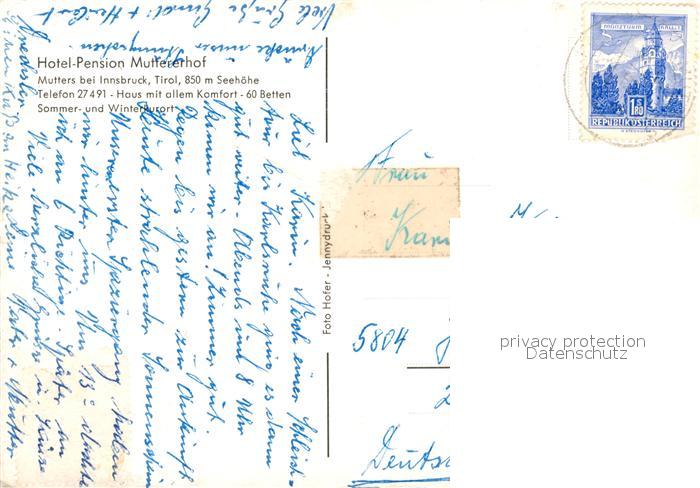 13234749 alte Postkarte Mutters Tirol Hotel Pension Muttererhof Alpen postalisch gelaufen Erhaltung siehe scans [FriedD77] KatCode: 11390332070331