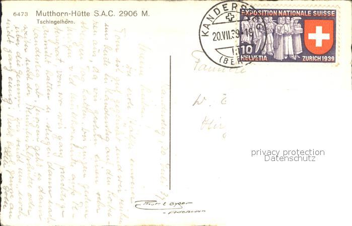 11853289 alte Postkarte Mutthorn Mutthornhuette mit Tschingelhorn postalisch gelaufen Erhaltung siehe scans KatCode: 11470410275972