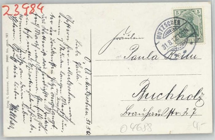 70028630 alte Postkarte Mutzschen Schloss postalisch gelaufen KatCode: 11110014383210