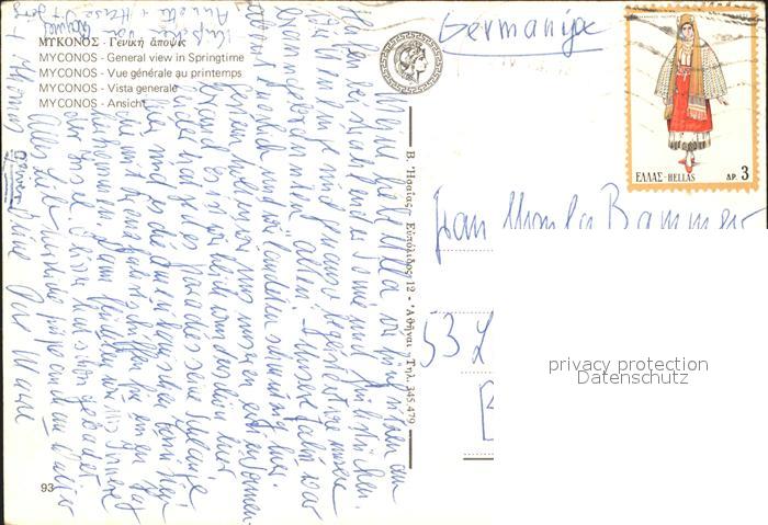 old postcard Myconos postalisch gelaufen Erhaltung siehe scans
