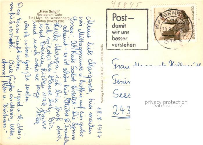 73323638 alte Postkarte Myhl Haus Scholl Restaurant Cafe postalisch gelaufen Erhaltung siehe scans [FriedD77] KatCode: 11110005370036