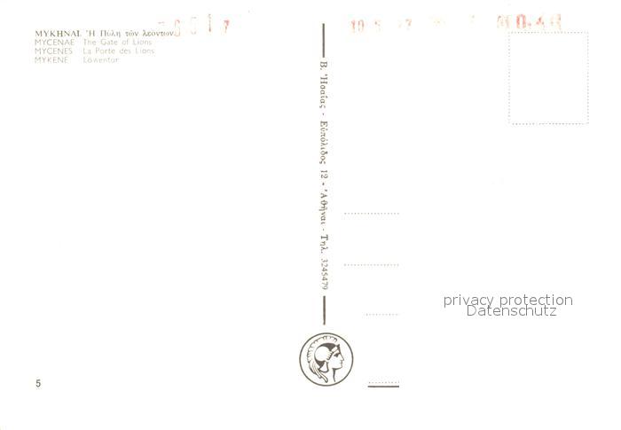 Mykene Loewentor Ruine Antike Staette postalisch nicht gelaufen Erhaltung siehe scans [FriedD77]