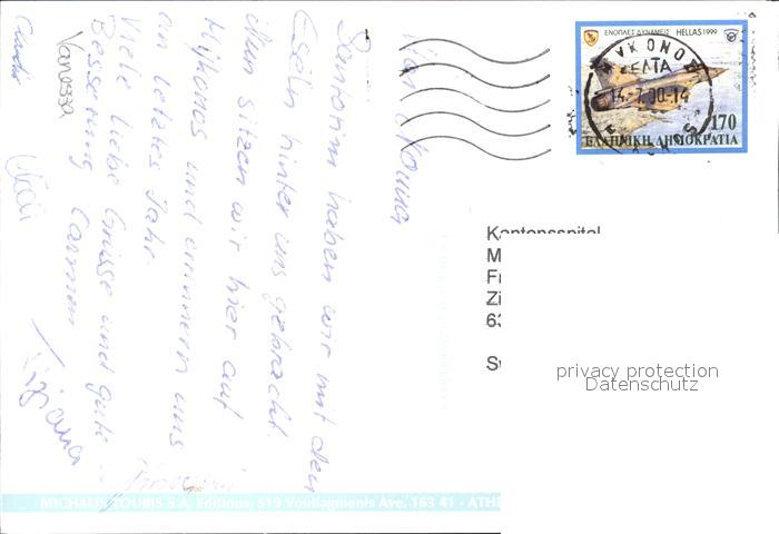 old postcard Mykonos Kykladeninsel aegaeis Hafen postalisch gelaufen Erhaltung siehe scans [AndreD76 kt121box]