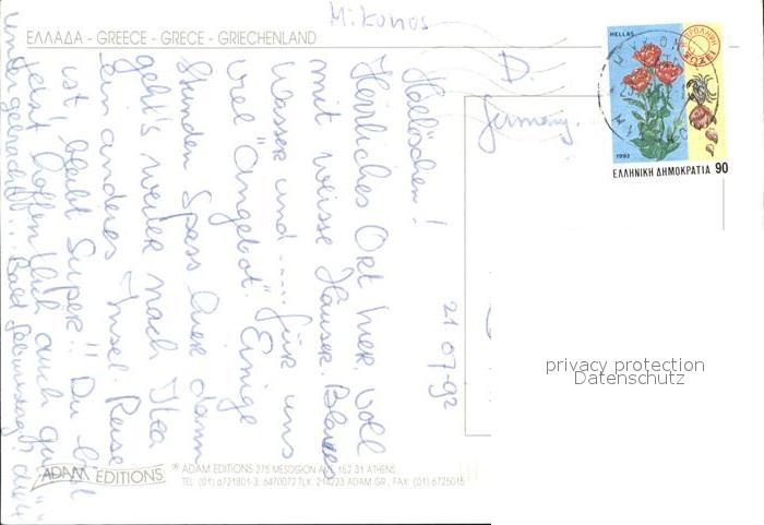 old postcard Mykonos Kykladeninsel aegaeis Hafen Fliegeraufnahme postalisch gelaufen Erhaltung siehe scans