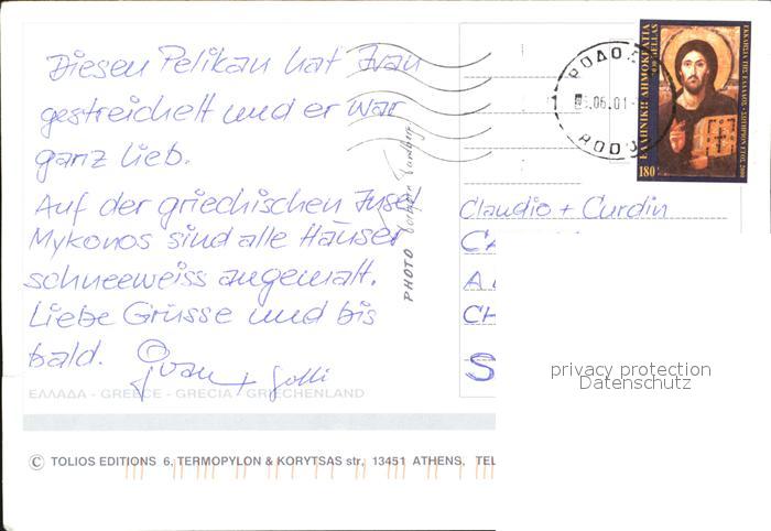 old postcard Mykonos Kykladeninsel aegaeis Hafen Pelikan postalisch gelaufen Erhaltung siehe scans [AndreD76 kt121box]