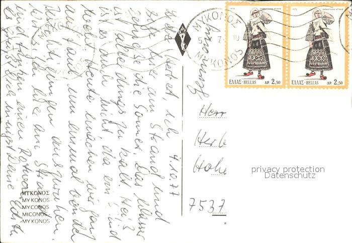 old postcard Mykonos Kykladeninsel aegaeis Kleine Gaesschen Ufer postalisch gelaufen Erhaltung siehe scans