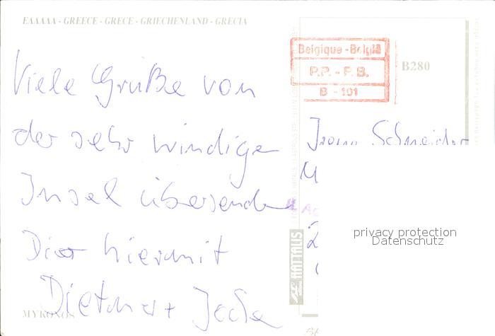 old postcard Mykonos Kykladeninsel aegaeis Panorama Hafen Kueste Insel postalisch gelaufen Erhaltung siehe scans