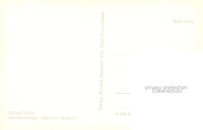 73612870 alte Postkarte Mylau Jugendherberge Charlotte Rotholz postalisch gelaufen Erhaltung siehe scans [FriedD77] KatCode: 11110014178390