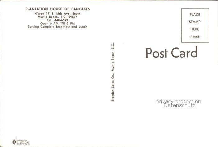 71845009 Myrtle Beach Plantation House of Pancakes postalisch nicht gelaufen Erhaltung siehe scans KatCode: 14140430000000