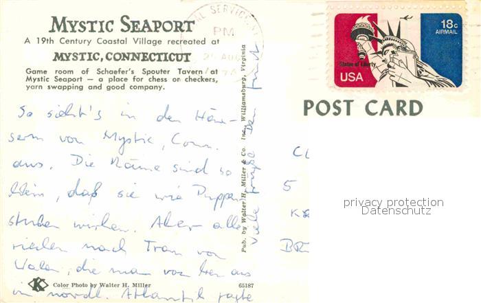 72824046 old postcard Mystic Connecticut Game room of Schaefers Spouter Tavern postalisch gelaufen Erhaltung siehe scans [FriedD77] KatCode: 14140070000000