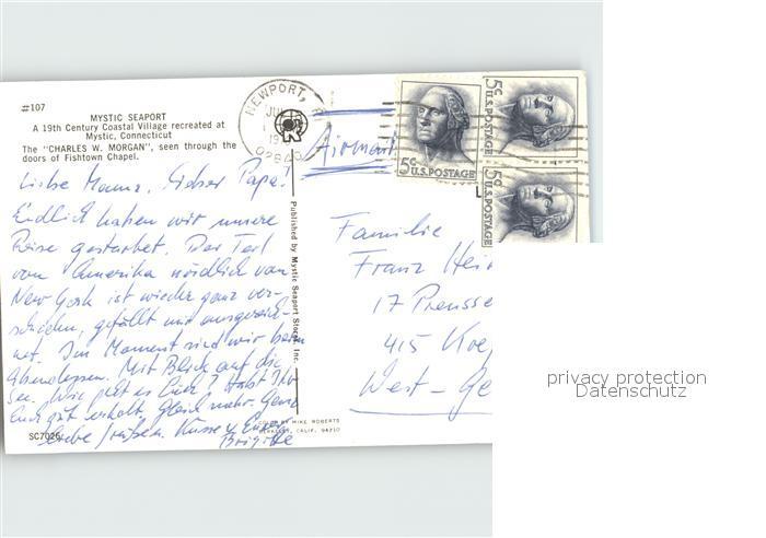 71990558 old postcard Mystic Connecticut Mystic Seaport postalisch gelaufen Erhaltung siehe scans KatCode: 14140070000000