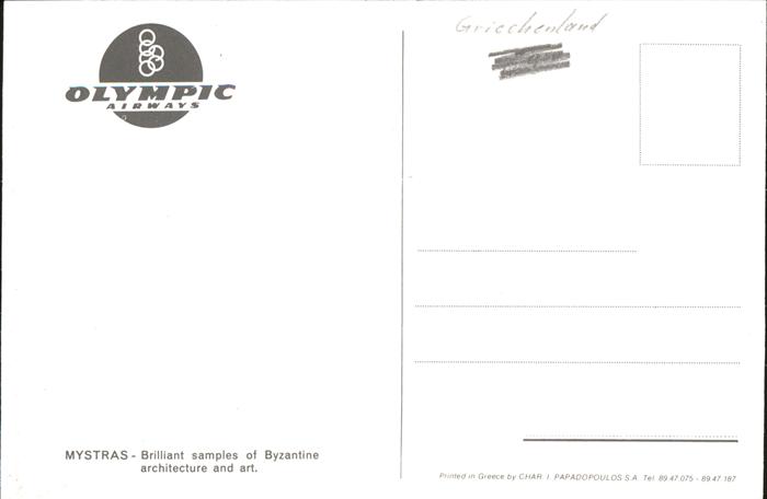 Mystra Brillant samples of Byzantine architecture and art postalisch nicht gelaufen gute Erhaltung